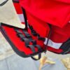 Lahek in funkcionalen taktični brezrokavnik v rdeči barvi z odsevnimi črtami zagotavlja, da je uporabnik dobro prepoznaven tudi v temi.